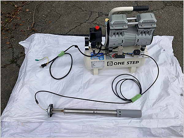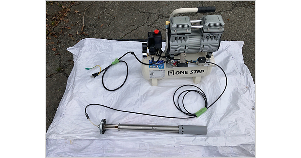具体的には、熊本県が発注する大切畑ダムの堤体復旧工事現場で、油圧ショベルの一種であるバックホウ(1.4m³、0.8m³の2機種)と、45kVA発動発電機の3機種に超高密度ナノバブル発生装置を設置し、燃料消費量の比較試験を実施し、燃料消費量の低減効果を検証した(写真2)。