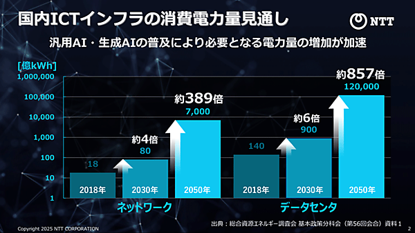 出所 NTT 川添 雄彦、「ワット・ビット連携の実現に向けて -IOWN-」、ワット・ビット連携官民懇談会」第1回説明資料、2025年3月21日