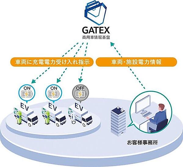 今回開始したSmartEVerでは、施設の電力使用量の実績・予測データをエネルギーマネジメントプラットフォームで分析し、その結果をもとに、いすゞの商用車情報基盤「GATEX」が車両に必要となる充電量を算出し、車両へ充電の受け入れ量を指示する。この受け入れ量に合わせて車両側で充電することにより、施設全体の電力ピークの発生を抑制し、電気の基本料金増加を防止するとしている。