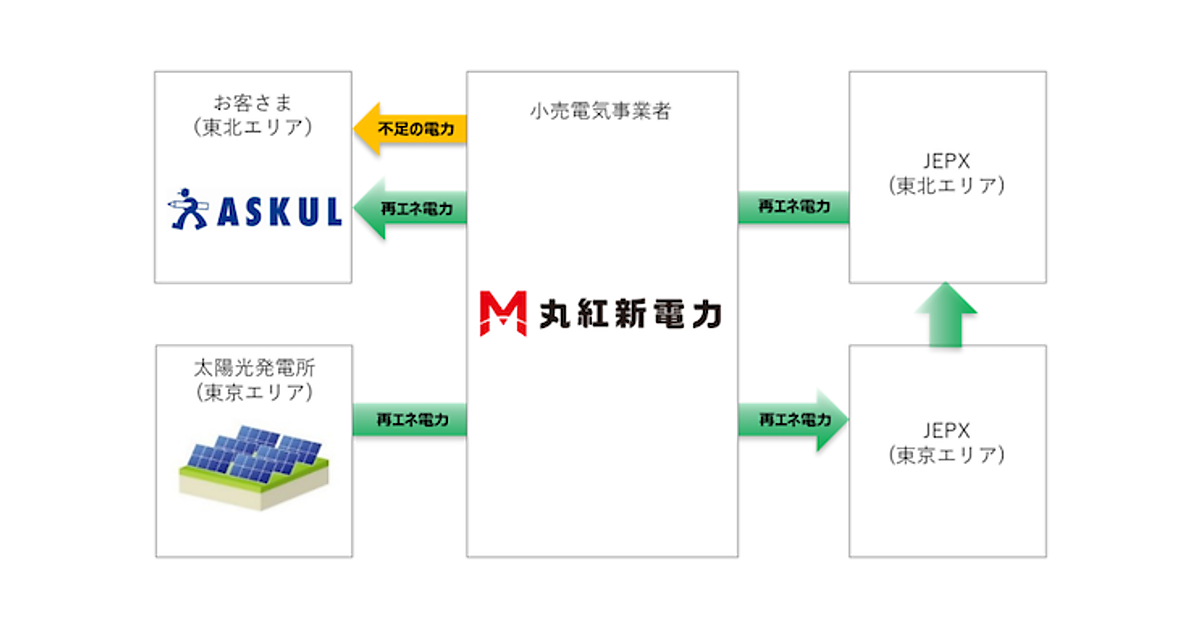 出所 丸紅新電力株式会社 ニュース 2025年12月10日、「丸紅新電力株式会社とアスクル株式会社によるエリア跨ぎを一部活用したオフサイトコーポレートPPAによる再生可能エネルギー電力の導入について」