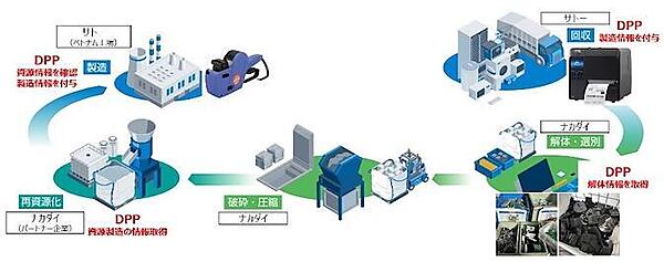 今回のPoCは、同社製ラベルプリンターの製造、使用済み製品の回収、解体・選別、ABS樹脂の再生処理、再生素材を用いたハンドラベラーの試験製造までの工程にDPPを導入し、実施した。