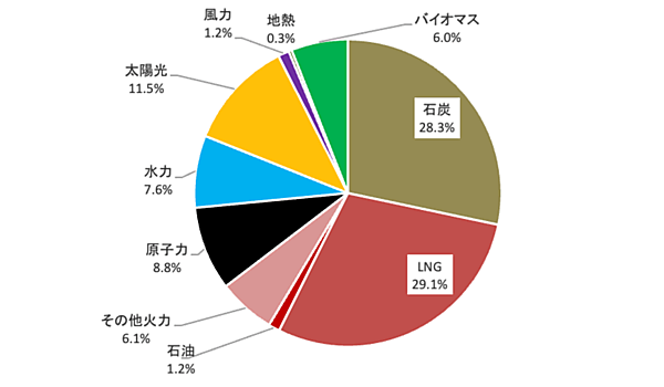 図2 日本国内の電源構成(2024年度の年間発電量)