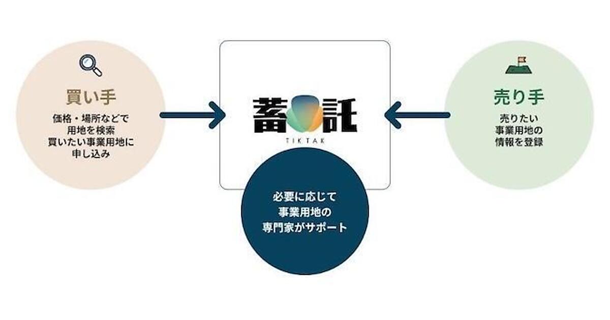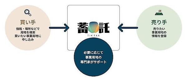 蓄託は、蓄電池事業者やEPC・開発事業者、土地所有者が直接取引するためのプラットフォーム。売り手は事業用地の情報を登録でき、買い手は地域や価格といった条件をもとに用地を検索し、申し込みできる。また、必要に応じて事業用地の専門家が支援する。掲載される情報は系統用蓄電池の設置を想定した土地に特化しており、事前に地目や用途地域、接道条件などを整理する。全国の案件を対象とし、未公開案件にも対応する。