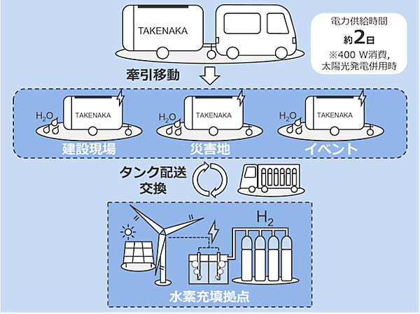 水素タンクと燃料電池を一体化した移動式電源、竹中工務店らが開発