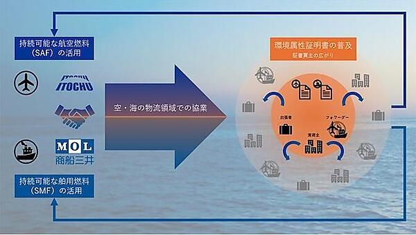 証書普及に向け海・空の環境価値を相互取引、商船三井と伊藤忠が協業
