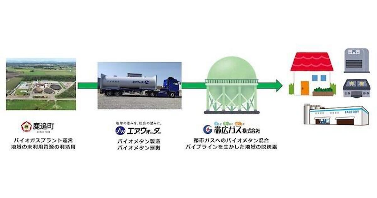 国内初のバイオメタンを都市ガス網で供給、北海道鹿追町・帯広ガス・エア・ウォーター