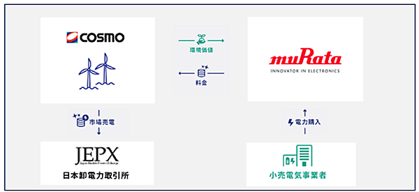 図1 村田製作所とコスモエコパワーによるバーチャルPPAのスキーム