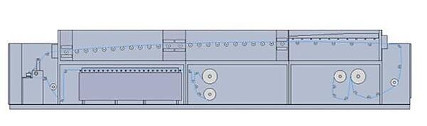PSCの基材巻出しから表面処理、塗工、乾燥、そして巻取りまでを連続的に実行し、表面処理工程には、量産化で課題となる塗膜形成を容易にするための「エキシマUV処理注4」が組み込まれている。これは従来、基材への液弾きによって製膜が困難であった問題を解決するもの。エキシマUVは、照射距離が広がると表面処理に悪影響を及ぼすため、高精度な搬送技術によって基材とランプの距離を一定に保つことで、表面処理のムラを低減させているという。