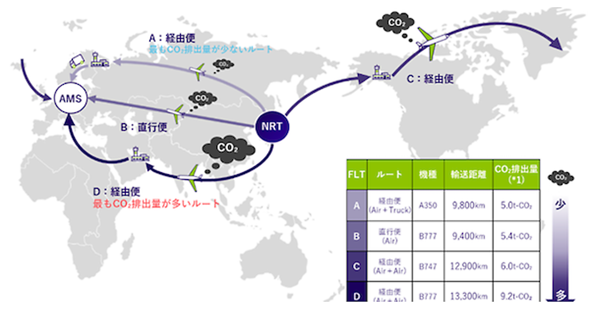 航空便をCO2排出量で選ぶ新サービス、日本通運が開始
