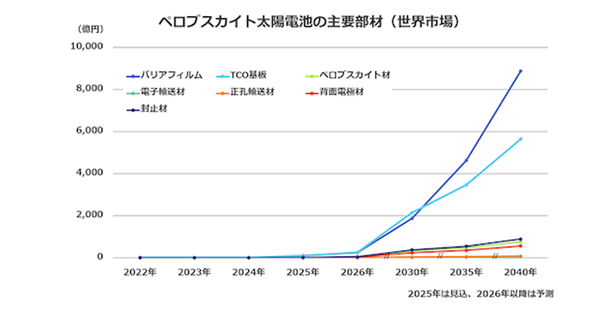 ペロブスカイト部材市場は2030年以降に本格的成長