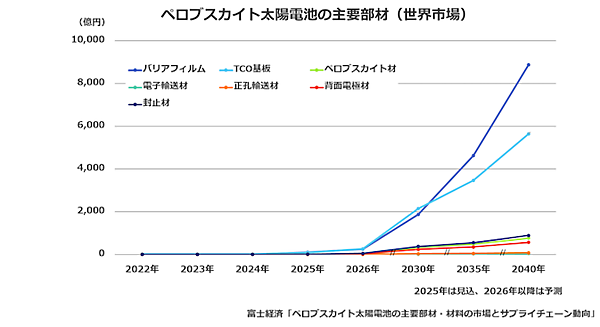 出所 株式会社富士経済 プレスリリース 2026年1月22日、「ペロブスカイト太陽電池の主要部材市場を調査」