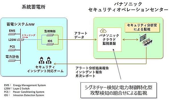 パナソニック ホールディングス株式会社(以下、パナソニックHD)とパナソニック ソリューションテクノロジー株式会社(以下、PSTC)は、伊藤忠商事株式会社(以下、伊藤忠商事)と連携し、国内系統蓄電所注1での運用を想定したサイバーセキュリティ監視の実証実験を開始する(図1)。系統蓄電所での実運用を想定した実証は、世界初だという。通信や挙動を監視し、異常の早期検知や状況把握の有効性を検証する。2026年2月16日に発表した。