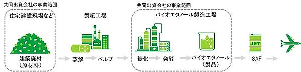 2028年までにバイオエタノールを年間2万キロリットル生産する計画。製造したバイオエタノールは石油元売事業者に販売し、SAFに転換後、航空燃料として使用する。また、製造過程で出るリグニン成分を活用し、住宅用塗料の原料などバイオリファイナリー製品の事業化を見据えた開発も進める。
