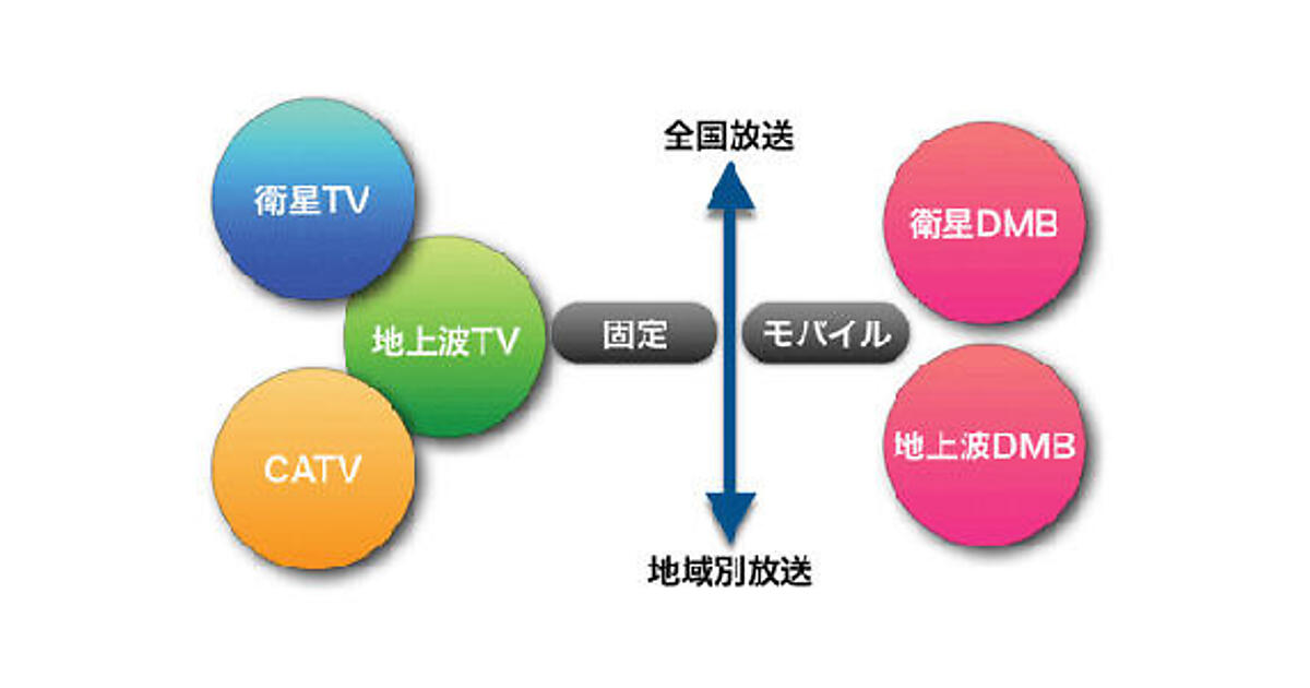2004年度に改定された放送法では、DMBを「移動マルチメディア放送」と定義しましたが、一般的にはDMBという愛称が広く使われています。