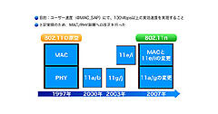 802.11nの物理層や、標準化スケジュールについては、802.11n(無線LAN)の標準化動向 (2)をご参照ください。
