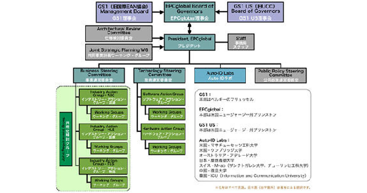 EPCglobalの日本支部であるEPCglobal Japanが設置されている財団法人流通システム開発センター は、日本における流通コード管理機関として、1978年に国際EAN協会に加盟しています。また、国際EAN協会から「GS1」への改称に伴い、同センターの流通標準本部が「GS1 Japan」として活動していくことになりました。