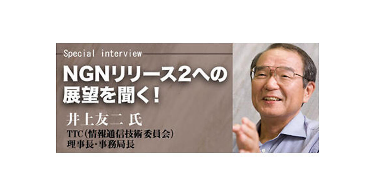 2006年7月のNGNリリース1に続いて、2008年のNGNリリース2に向けた標準化か活発化しています。NGNリリース1は、電話をIP化することが中心的課題でしたが、NGNリリース2は、IPTV(IP放送)などの映像配信サービスも実現するなど、NGN本来の実力が発揮されるネットワークになろうとしています。そこで、日本におけるNGNやIPTV、IMSなど次世代技術の標準化作業を推進している、TTC(社団法人情報通信技術委員会)の理事長ある井上友二氏に、注目される「標準化の重要性」と「NGNリリース2への展望」をお聞きしました。井上氏は、NTTで通信網の構成技術や伝送技術の研究に携わる一方、ITU-Tの標準化活動にも積極的に貢献し、その後、NTT取締役第三部門長としてNTTの研究部門の責任者としても活躍されました。