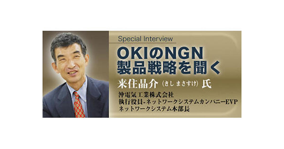 OKI(沖電気工業)は、事業統合によりNGN領域への対応を強化するなど、NGNに対する積極的な動きが注目されています。金融、公共、トラベルなど、ネットワーク利用者に直結したサービスの提供に強みを持つOKIは、NTTのNGNトライアルにも参加し、NGNの実現イメージを私たちの前に分かりやすく示しています。OKIの執行役員でネットワークシステムカンパニーEVP ネットワークシステム本部長の来住晶介(きし まさすけ)氏に、OKIが考えるNGNへのアプローチ、製品体系とその特徴などについてお聞きしました。