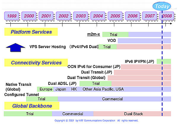 〔1〕NTTコミュニケーションズによるIPv6のロードマップと展開のイメージ