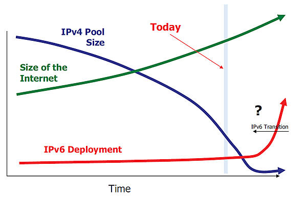 IPv4は残りはあと20%しかない。IPv6がIPv4の枯渇に追いつけるか、最後のマラソンレースのような状況となっている。IPv6はこれからのビジネスの成長と継続を実現するうえで必須のものであり、とりわけモバイルへの展開などにおいては、ビジネスへの影響が非常に大きいことを強調したい。
