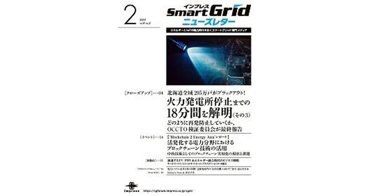 2019年2月号 加速するEV/PHV&エネルギー融合時代のビジネス戦略 インプレスSmartGridニューズレター編集... 2019年2月1日 0:00 EV(BEV) 新動向 【‘Blockchain 2 Energy Asia’レポート】活発化する電力分野におけるブロックチェーン技術の活用 久田 雅之 株式会社会津ラボ 取締役 2019年2月1日 0:00 北海道全域295万戸がブラックアウト! 火力発電所停止までの18分間を解明(その3) 2019年2月1日 0:00 スマートグリッド 電力システム改革の第3段階! 送配電部門の「法的分離」に向けて「省令」改正を公布 インプレスSmartGridニューズレター編集... 2019年2月1日 0:00 政策 トピックス