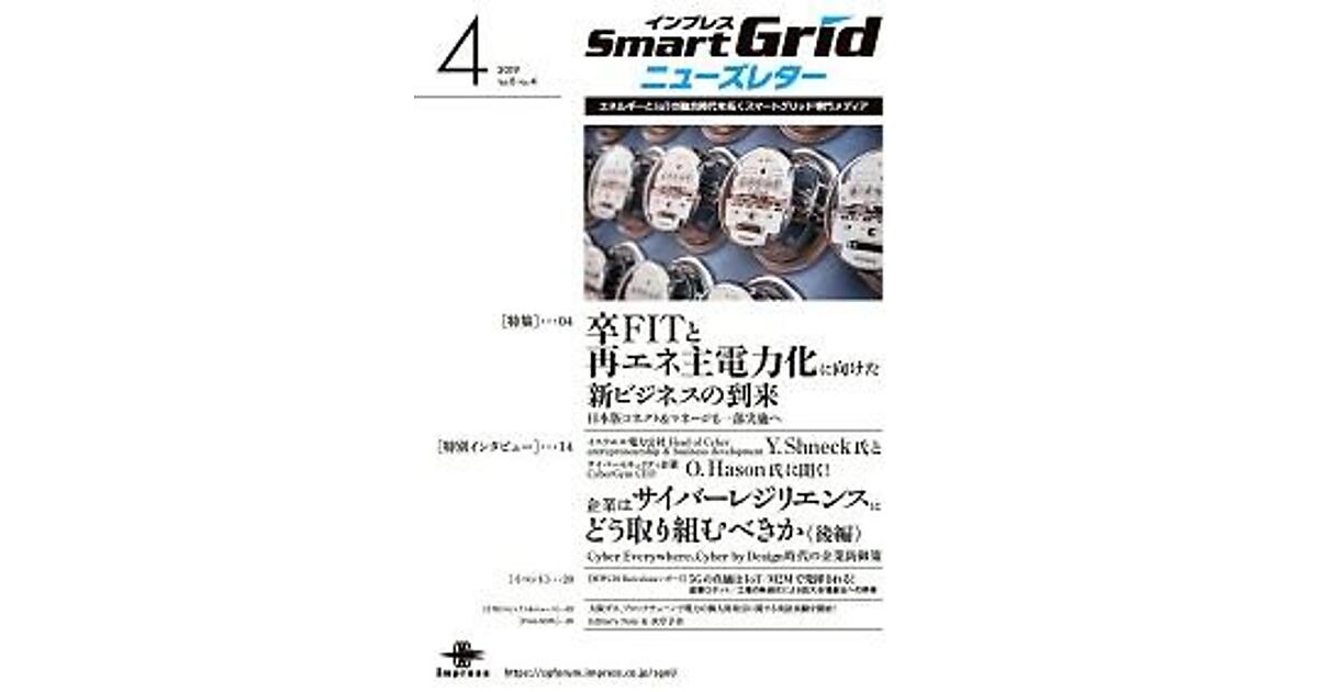 2019年4月号 【MWC19 Barcelonaレポート】5Gの真価はIoT/M2Mで発揮される! 杉沼 浩司 日本大学生産工学部 講師(非常勤)...2019年4月3日 0:00 IoTイベント 企業はサイバーレジリエンスにどう取り組むべきか(後編) インプレスSmartGridニューズレター編集...2019年4月3日 0:00 サイバーセキュリティ 特集 卒FITと再エネ主電力化に向けた新ビジネスの到来 インプレスSmartGridニューズレター編集...2019年4月3日 0:00 再生可能エネルギー 大阪ガス、ブロックチェーンで電力の個人間取引に関する実証試験を開始! インプレスSmartGridニューズレター編集...2019年4月3日 0:00 ニュービジネストピックス
