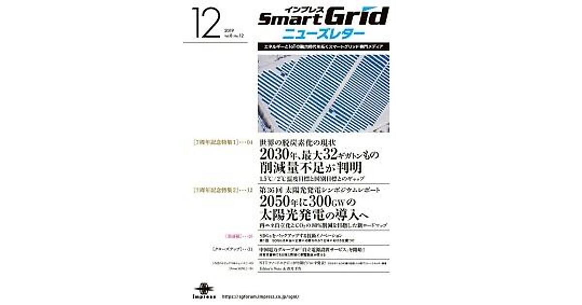 2019年12月号 中国電力グループが「自立電源設置サービス」を開始! 威能 契 インプレスSmartGridニューズ...2019年12月12日 0:00 再生可能エネルギークローズアップ SDGsをバックアップする技術イノベーション 第1回 SDGsは本当に企業に必要なのか? 日本における位置づけ 新井 宏征 インプレスSmartGrid ニュ...2019年12月12日 0:00 情報通信(ICT) 特集 【創刊7周年記念】 第36回 太陽光発電シンポジウムレポート 2050年に300GWの太陽光発電の導入へ インプレスSmartGridニューズレター編集...2019年12月12日 0:00 再生可能エネルギー 特集 【7周年記念】世界の脱炭素化の現状 2030年、最大32ギガトンもの削減量不足が判明 インプレスSmartGridニューズレター編集...2019年12月12日 0:00 政策 NTTアノードエナジーが中期ビジョンを発表! インプレスSmartGridニューズレター編集...2019年12月12日 0:00 スマートグリッドトピックス