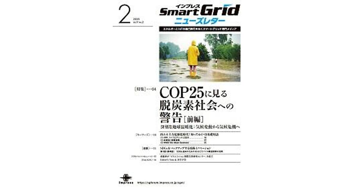 2020年2月号 再エネ主力電源化時代! 知っておくべき基礎用語(3)WMB(We Mean Business) インプレスSmartGridニューズレター編集... 2020年2月6日 0:00 政策 キーワード 再エネ主力電源化時代! 知っておくべき基礎用語(2)逆潮流と創蓄連携 平松 勝彦 パナソニック株式会社 ライフソリュ... 2020年2月6日 0:00 再生可能エネルギー キーワード 再エネ主力電源化時代! 知っておくべき基礎用語(1)VPP、マイクログリッドとDER 新谷 隆之 インターテックリサーチ株式会社 代... 2020年2月6日 0:00 スマートグリッド キーワード SDGsをバックアップする技術イノベーション 最終回 SDGs達成のための5Gなどモバイル関連技術の活用 新井 宏征 インプレスSmartGrid ニュ... 2020年2月6日 0:00 情報通信(ICT) COP25に見る脱炭素社会への警告 COP25に見る脱炭素社会への警告 ≪前編≫ インプレスSmartGridニューズレター編集... 2020年2月6日 0:00 再生可能エネルギー 産総研が「ゼロエミッション国際共同研究センター」を設立 インプレスSmartGridニューズレター編集... 2020年2月6日 0:00 再生可能エネルギー トピックス