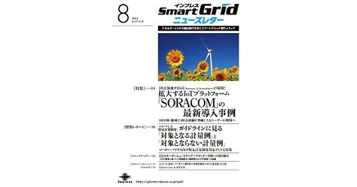 2022年8月号 IIJのカーボンニュートラルデータセンター実現への取り組み インプレスSmartGridニューズレター編集...2022年8月11日 0:00 ニュービジネスクローズアップ 特別レポート スタートした特定計量制度! ガイドラインに見る「対象となる計量例」と「対象とならない計量例」 インプレスSmartGridニューズレター編集...2022年8月11日 0:00 政策 リレーインタビュー DXを加速するIoE(Internet of Everywhere)の展開 !拡大するIoTプラットフォーム「SORACOM」の最新導入事例 インプレスSmartGridニューズレター編集...2022年8月11日 0:00 IoT JCLPが、政府への「再エネ選択肢の多様性確保に向けた意見書」を公表! インプレスSmartGridニューズレター編集...2022年8月11日 0:00 再生可能エネルギートピックス