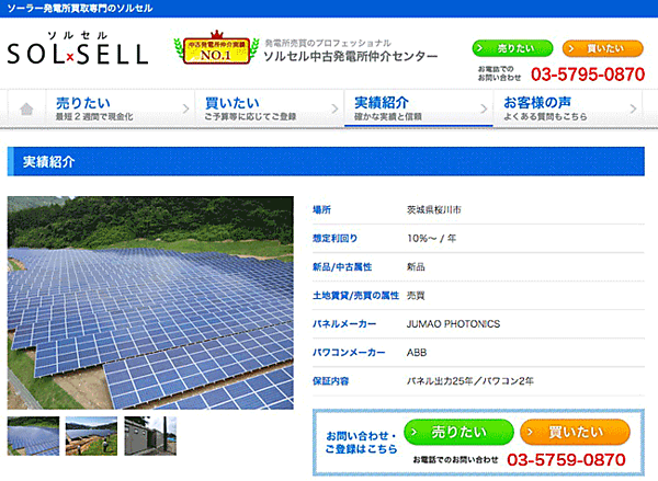 現在は個人や中小企業からのミドルソーラー(50kw程度)の流通がメインとなっているが、今後は、中古メガソーラーの流通も視野に入れており、メンテナンスの委託先の紹介や保険会社の斡旋なども可能な体制を整えている。