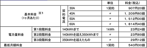 - 「ずっとも電気1」 料金表: