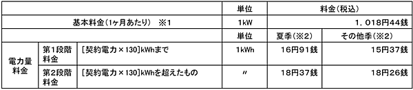 ※2 計量日時点での季節の単価を当該料金算定に用いる。(夏季 毎年7/1~9/30、その他季 毎年10/1~6/30)