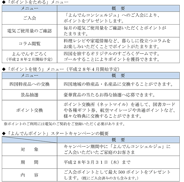 四国電力の会員制Webサービス「よんでんコンシェルジュ」※1に入会の顧客を対象とした「よんでんポイント」サービスを開始する。