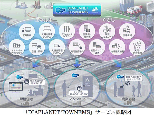 2016年5月20日、三菱電機株式会社(以下:三菱電機、東京都千代田区、執行役社長:柵山 正樹)は、IoT技術とクラウド基盤を活用し、接続したさまざまな機器の省エネ化に加えて、街のニーズにあわせた快適な暮らしをサポートするEMS(エネルギーマネジメントシステム)サービス「DIAPLANET TOWNEMS」を2016年6月に発売することを発表した。