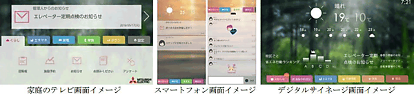 ・スマートフォンや共用部に設置されているデジタルサイネージにも対応させ、宅外からのサービス利用を可能にし、利便性を向上
