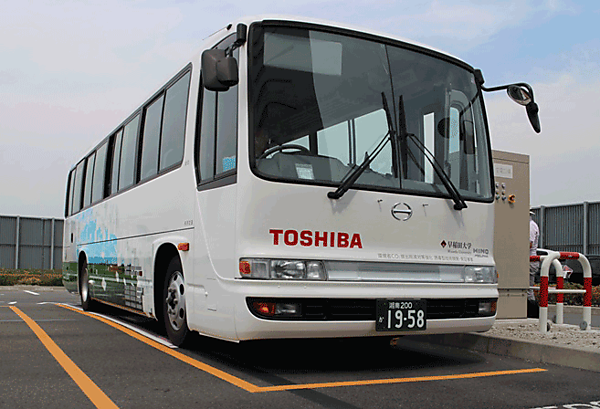 東芝、リチウムイオン二次電池「SCiB」搭載ワイヤレス充電中型EVバスの実証走行を開始