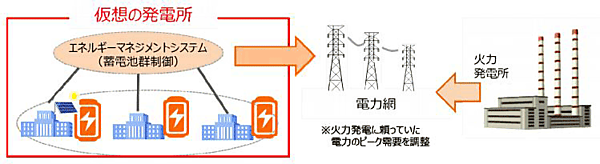 ※1 バーチャルパワープラント(VPP)構築事業:エネルギーマネジメント技術により、地域に散在する再⽣可能エネルギー発電設備や蓄電池等のエネルギー設備、デマンドレスポンス等の取組を統合的に制御、あたかも⼀つの発電所のように機能させる仕組みと、需要家側のエネルギー設備を供給⼒・調整⼒等に活⽤するビジネスモデルの構築を目指す事業。