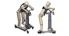 図 HAL作業支援用(腰タイプ)を装着して重い物を持ち上げようとするところ