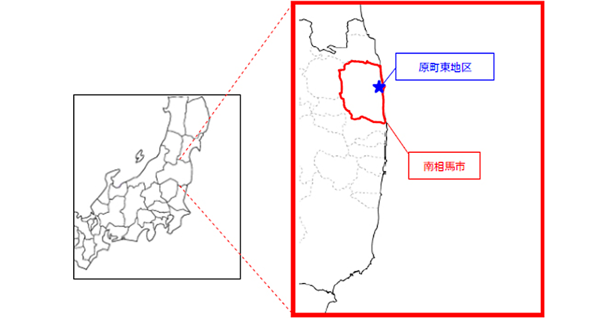 新設の太陽光発電所は、福島県南相馬市原町(はらまち)区の「下渋佐(しもしぶさ)」「萱浜(かやはま)」の両地区(2地区をまとめて「原町東地区」とも呼ぶ)にまたがる形で建設する。東日本大震災で被災した土地だ。南相馬市から用地を賃借して事業を展開する。敷地面積は約46ha(約46万m2)。ここに東芝製の太陽光発電モジュールを約12万枚設置する。合計最大出力は約32.3MW(約3万2300kW)。住友商事ら4社は年間発電量を細かくは予想していないが、一般家庭の年間消費電力量に換算して、約1万世帯分の電力を発電する見込みだという。