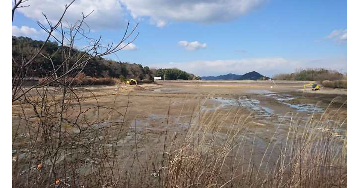 図 メガソーラー建設前の御田神辺池。排水して底面が見えている