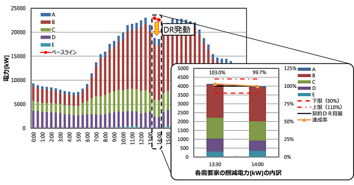 経済産業省が実施した2016年度「高度制御型ディマンドリスポンス実証事業」で、東芝は9件の電力利用者から5件を選び出し、参加業者の中で最高の精度で電力量削減を達成したという。削減量4000kWの設定で、4055kWの節電に成功し、その精度は101.4%となった。