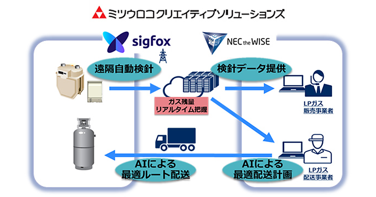 NEC、京セラコミュニケーションシステム、ミツウロコクリエイティブソリューションズは、SIGFOXで得たガス検針データから、LPガスの配送業務の効率を上げるシステムを共同で開発したと発表した。