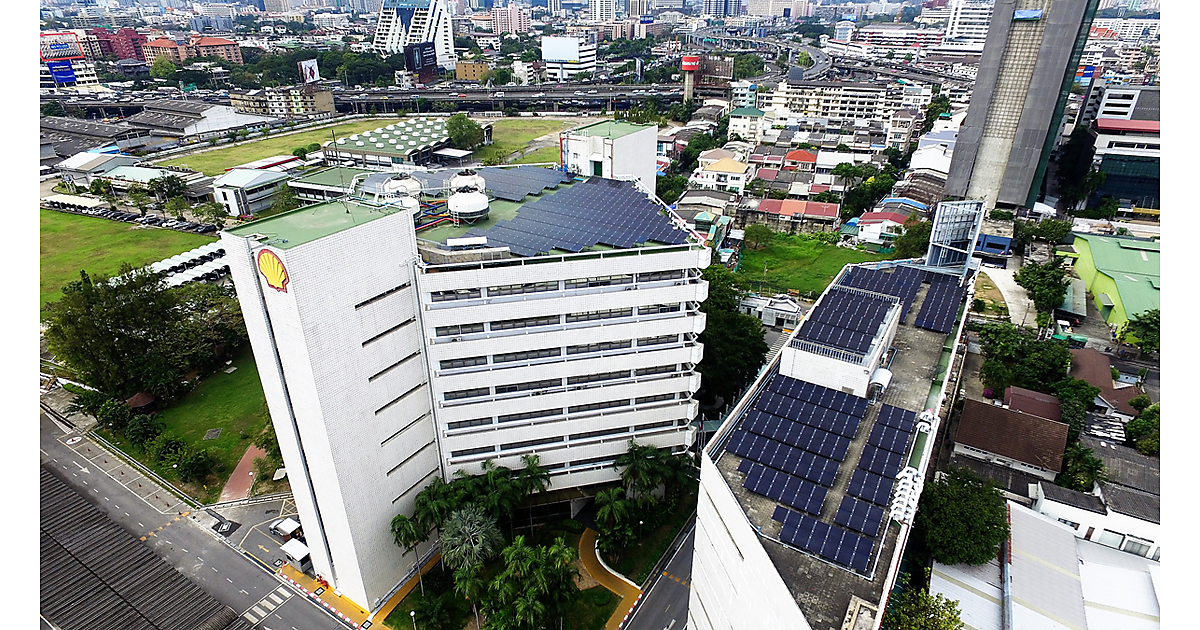 バンコクにある本部ビル「シェルハウス」の2棟のビル屋上に太陽光発電システムを設置した。合計出力は119.68kW。ソーラーフロンティアは年間発電量を、およそ179.5MWh(17万9479kWh)と見ている。設備利用率を計算するとおよそ17.12%となる。経済産業省の調達価格等算定委員会が2016年2月に公表した資料によると、日本における太陽光発電システムの設備利用率は平均で13.8%。タイは日本に比べてかなり日射条件に恵まれていると言えるだろう。
