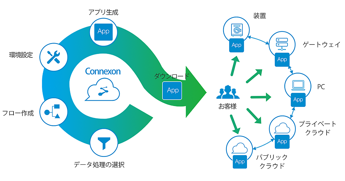図 Connexonにおけるアプリケーション作成の流れと、応用範囲