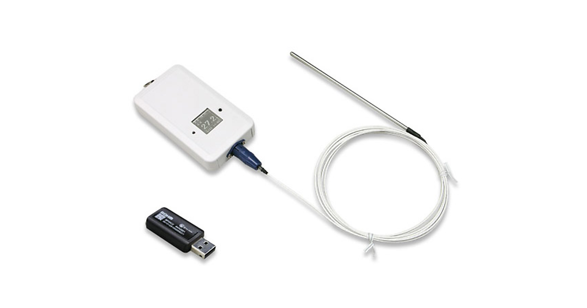 図 「ワイヤレス品温モニターセット(Windows対応)」。温度センサーにUSB接続の受信機が付く