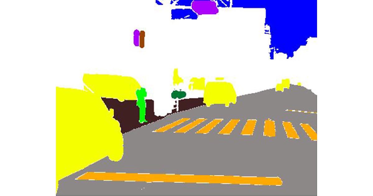 図 車載カメラが捉えた画像(上)と、ラベリング済みの画像(下)