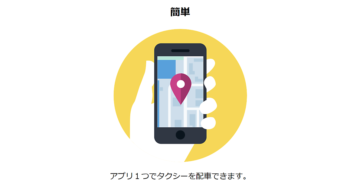 基本的な機能はJapanTaxiが提供している「全国タクシー」と変わらない。スマートフォンに現れる地図で、利用者自身が現在位置を確認し、乗車場所を指定すると、その指示がインターネット経由でサーバーに届き、近隣を走っているタクシーに、その場に向かうよう指示が出る。アプリケーションが予想する到着時間を確認した上で配車を依頼することも可能になっている。