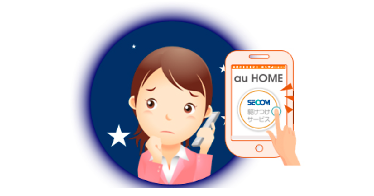 そして、各種センサーの検出値や履歴を見て、自宅に何かが起こった可能性がある場合に備えて、オプションで「セコム駆けつけサービス(ココセコム for au HOME)」を提供する。利用するにはセコムとの契約が必要。加入料金と月額基本料金は無料。警備員派遣を依頼すると1回につき1万円かかる。