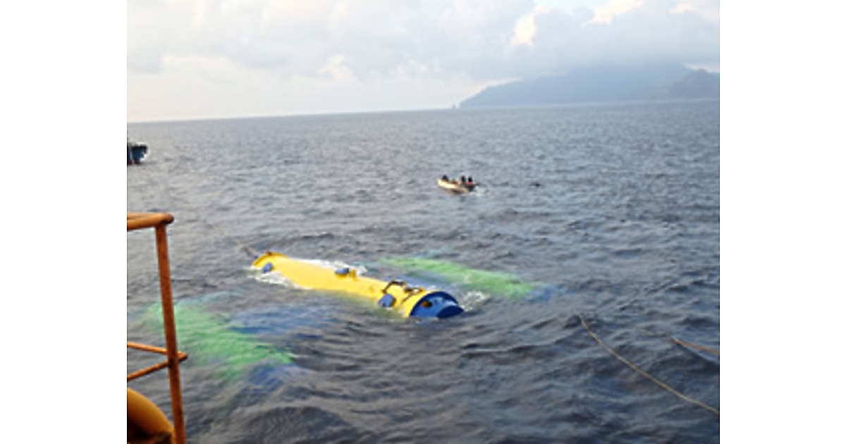 今回の実証実験は、IHIが開発した海流発電システムの実証機「かいりゅう」を、鹿児島県十島村(としまむら)の離島、口之島(くちのしま)沖の黒潮が流れる海域に設置して実施した。実験の期間は8月12日から18日の7日間だ。かいりゅうは海流を受けて回転して発電するタービンを2つ搭載している。それぞれの最大出力は50kW。合計100kWとなる。