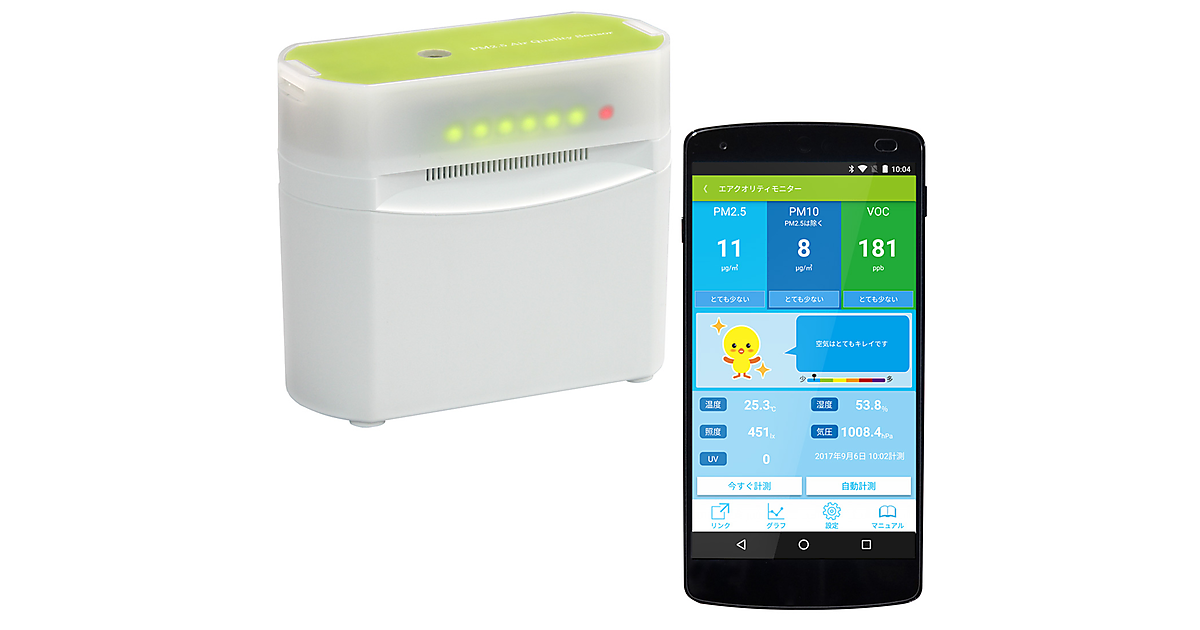 Bluetooth エアクオリティ モニターはBluetooth Low Energy(BLE)の通信機能を持っており、計測結果をスマートフォンやタブレットに送信する。ユーザーは専用アプリケーションをインストールすることで、スマートフォンやタブレットでセンサーの計測結果を確認できる。